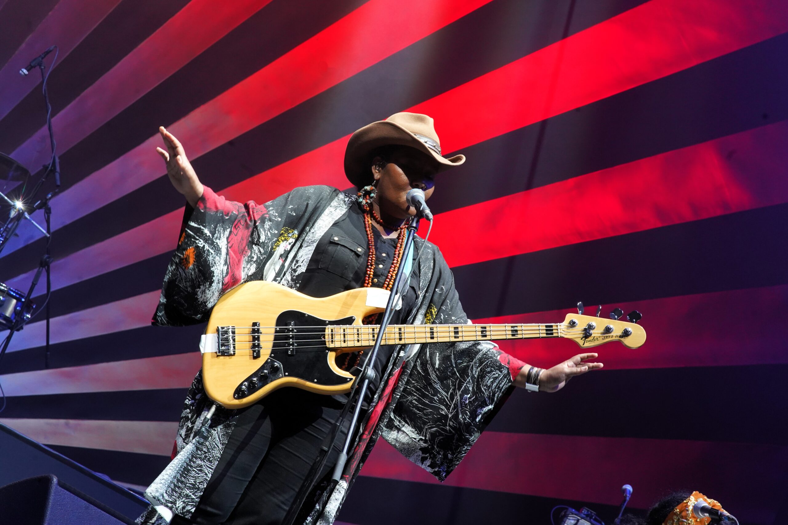 Umso erstaunlicher war das selbst nach westlichen Maßstäben geradezu feministische Line-Up des Festivals. Fast durchgehend standen starke Frauen im Mittelpunkt. YolanDa Brown und Chaka Khan sowieso, aber auch bei Kokoroko sind Sheila Maurice-Grey und Cassie Kinoshi die Masterminds, bei Haitus Kaiyote Nai Palm, bei The Cat Empire neuerdings Grace Barbé. Vor allem aber Nadeen Lingawi alias Fulana stand für die Öffnung und den Wandel, der derzeit stattfindet. Die 28-jährige, in Vancouver geborene, aber in Dschidda lebende Sängerin, die eigentlich Architektin ist, begann vor gut zehn Jahren gewissermaßen therapeutisch und durchaus im Konflikt mit ihrer Familie mit der Musik, veröffentlichte dann erste Songs unter ihrem Pseudonym und gehört nun zu den führende Indie-Musikern der saudischen Szene, die mit Ahmed Shawlys Label „Wall of Sound“ auch eine organisatorische Heimat gefunden hat. Seit 2021 spielt sie regelmäßig immer größere Konzerte im Land. Auch wenn ihre im Duo rein elektronisch instrumentierten Songs nur schwerlich selbst einem erweiterten Jazzbegriff zuzuordnen sind, hatte die ohne Kopftuch Auftretende hier viele begeisterte Fans im Saal.