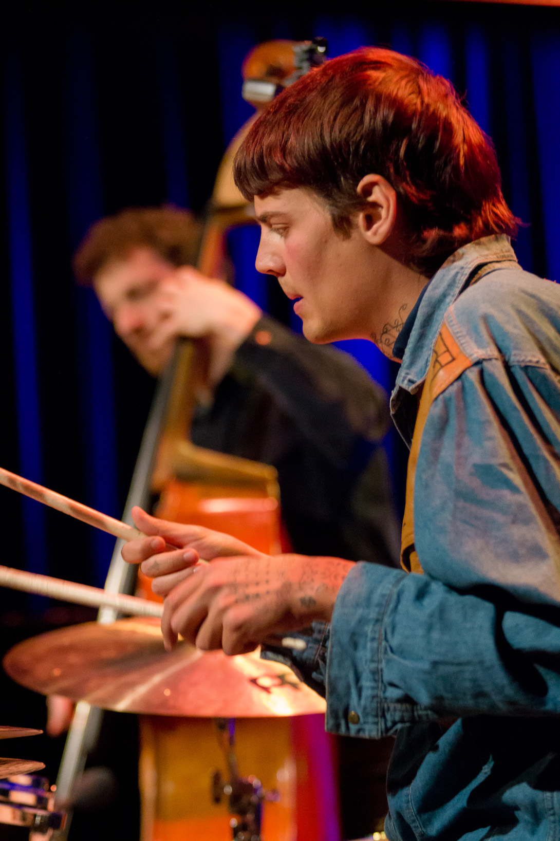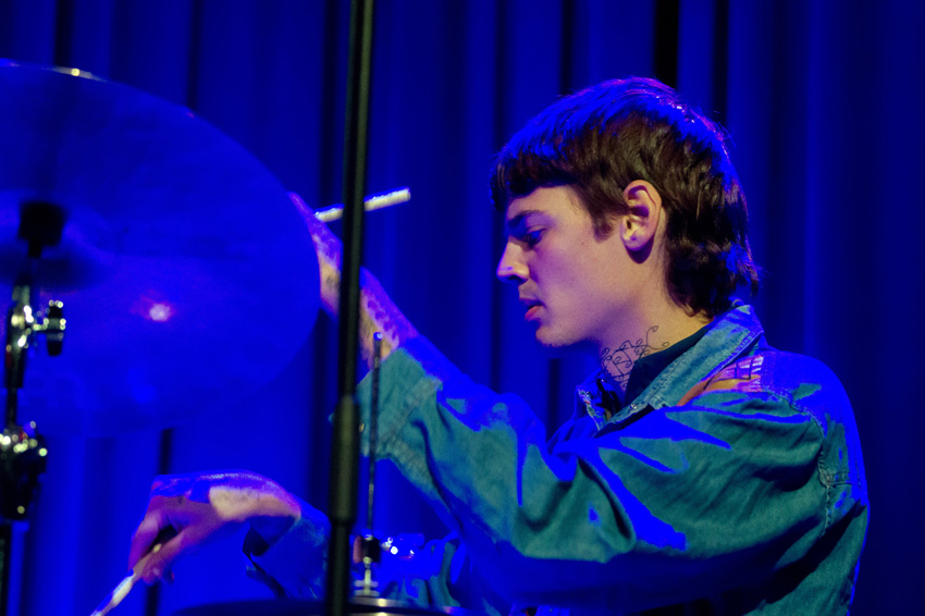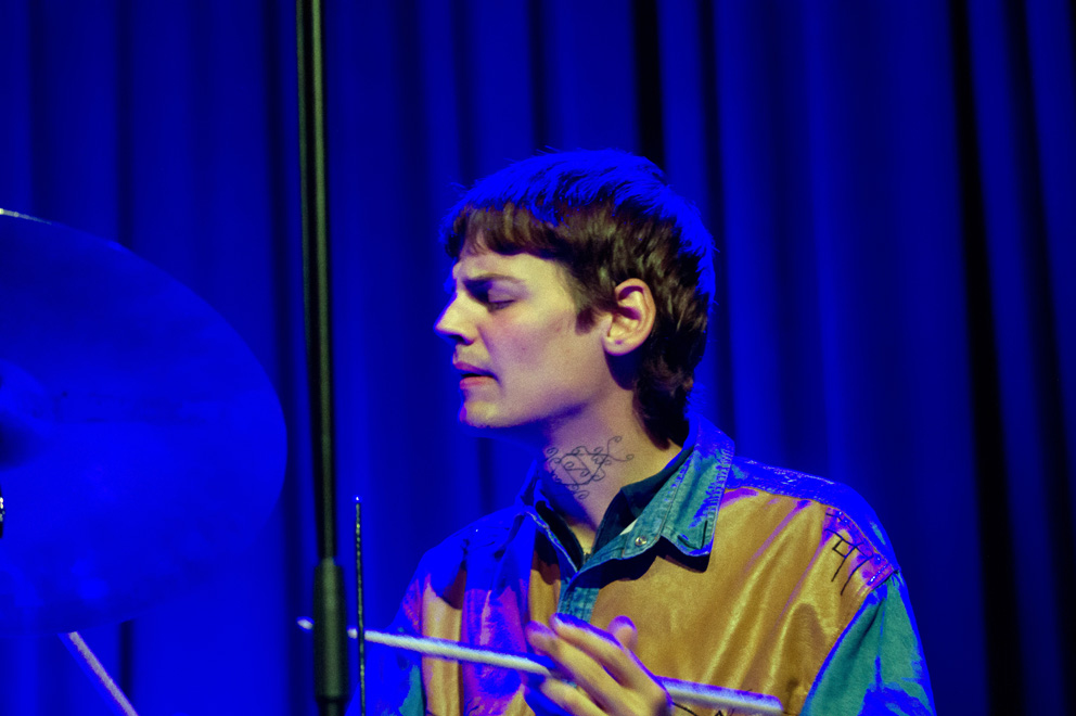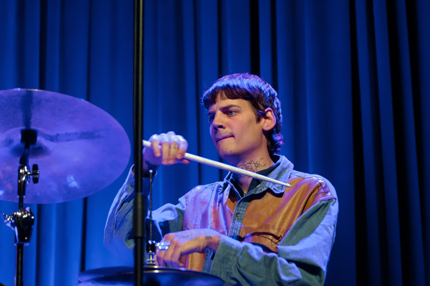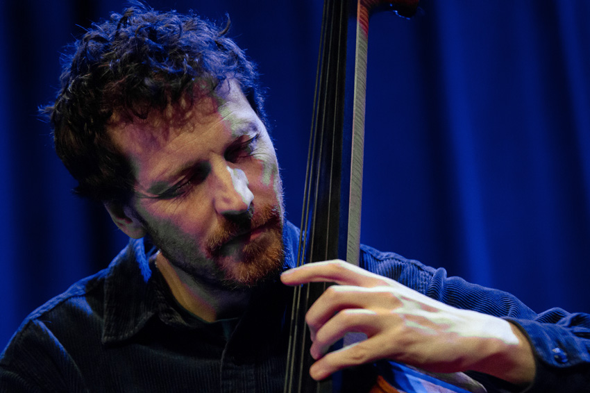 Anstelle von Kit Downs, der auf dem Album die Tasten bedient, macht im domicil : Jozef Dumoulin seine Sache genauso engagiert. Leif Berger hat am Schlagzeug Platz genommen – auf wie viel explosives Temperament man sich in den folgenden 75 Minuten einlassen konnte, hat wohl mancher zu Beginn des Live-Sets noch nicht erahnt. Als fantasievolles Bindeglied – und damit auch als weitere starke Inspirationsquelle für Lucia Cadotsch – waltet Bassist Phil Donkin.