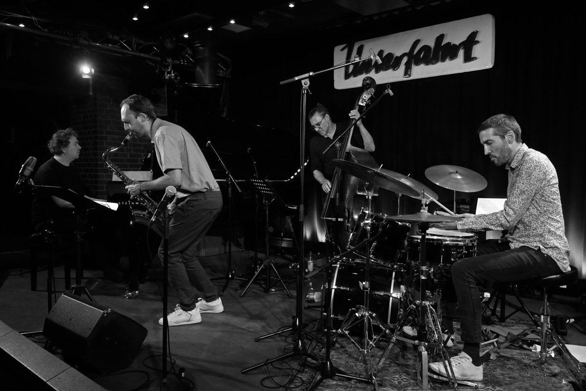 Nach einer inspirierten 2022er Summerweek im Münchner Jazzclub Unterfahrt ging Matthieu Bordenave kurz danach mit dem Quartett ins Studio und nahm sein neues ECM Album „The Blue Land“ auf. Die Beteiligung des Schlagzeugers James Maddren erwies sich als ausnehmend fruchtbar und konstruktiv für die Band. Die auf „La Traversée“ begonnene Klangreise knüpft mit der neuen Aufnahme direkt an und zeigt auf, wie sich Bordenaves musikalische Ideen weiterentwickelt haben. Im Vordergrund stehen dabei nach wie vor behutsam konzentrierte Klänge, ruhig, fast meditativ gespielt. Inspiriert sind die Stücke, die sich teilweise aus freien Assoziationen entwickeln, zum Teil aus Bordenaves Heimat: den Pyrenäen. Was die Aufnahme auszeichnet sind kleine Melodiephrasen, die sich kollektiv weiterentwickeln und zu einer Art ruhigem, fließenden Klang werden und den Hörer in ihren Bann ziehen. Der Begriff „Klanggemälde“ trifft es hier wohl am besten, wobei sich harmonische Tonfolgen, tiefgründige Improvisationen und freies Ausloten der Klangmöglichkeiten, die das Sopran- und Tenorsaxophon bieten, ausgewogen die Hand reichen.