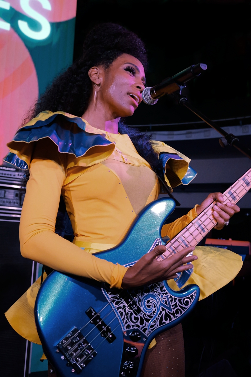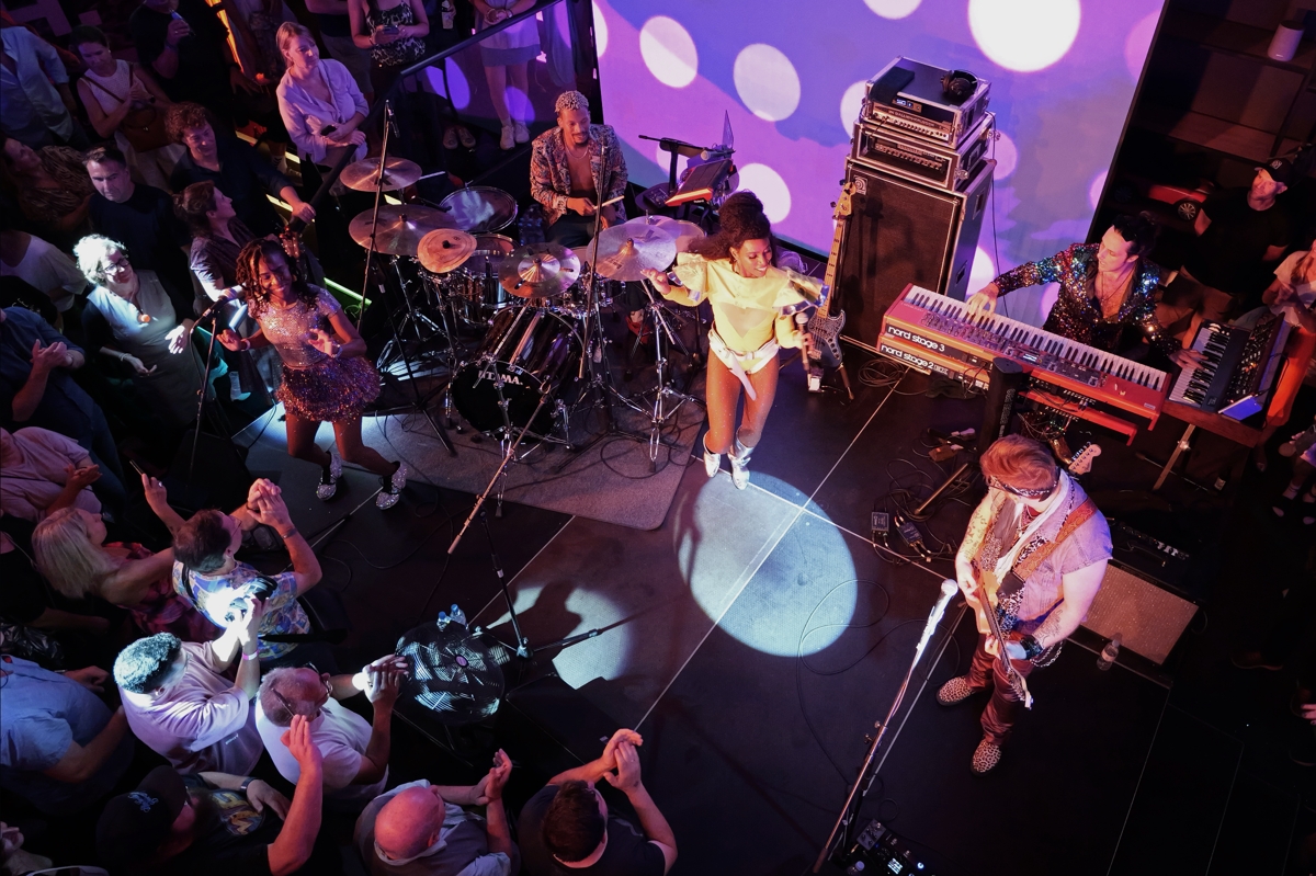 Nik West, in schillerndem und glitzerndem Dress, begann den Abend mit ihrer eingespielten Band gleich mit einer Hammerbassline. Mit von der Partie ihr langjähriger Gitarrist Craig Ziegelbauer, Drummer David Collum und an den Keyboards Lorenzo Campese. Als Backing Vocal war Alicia Sanders am Start, die im Lauf des Konzertes zwei eigene Songs von ihrem neuen Soloalbum vorstellte und begeisterte. Viel Zeit zum Verschnaufen hatte man bei der Show nicht wirklich. Wests „Forbidden Fruit“ oder „Do What you Gotta Do“ gingen richtig ab, es gab eine funkige Version des Beatles Klassikers „Come Togehter“, das eigentliche Motto des Abends – für Musiker wie das Publikum. Super Stimmung, Party pur, alle miteinander!