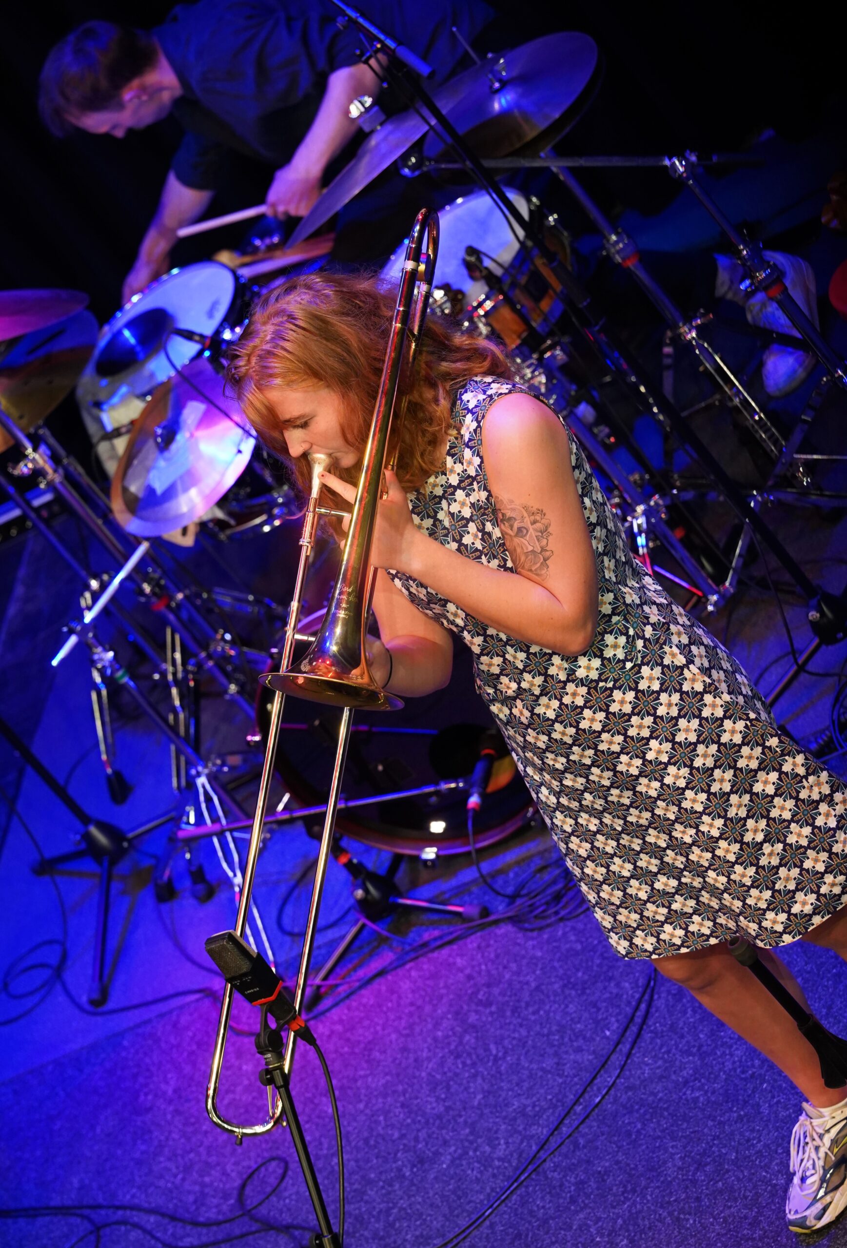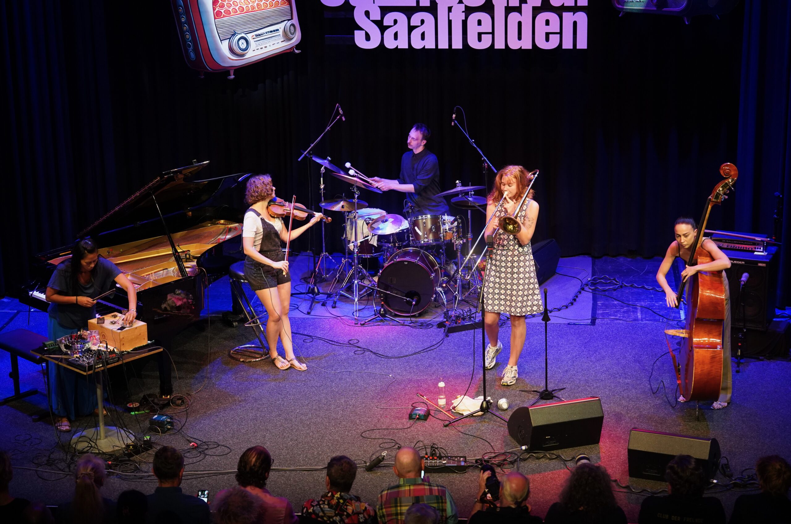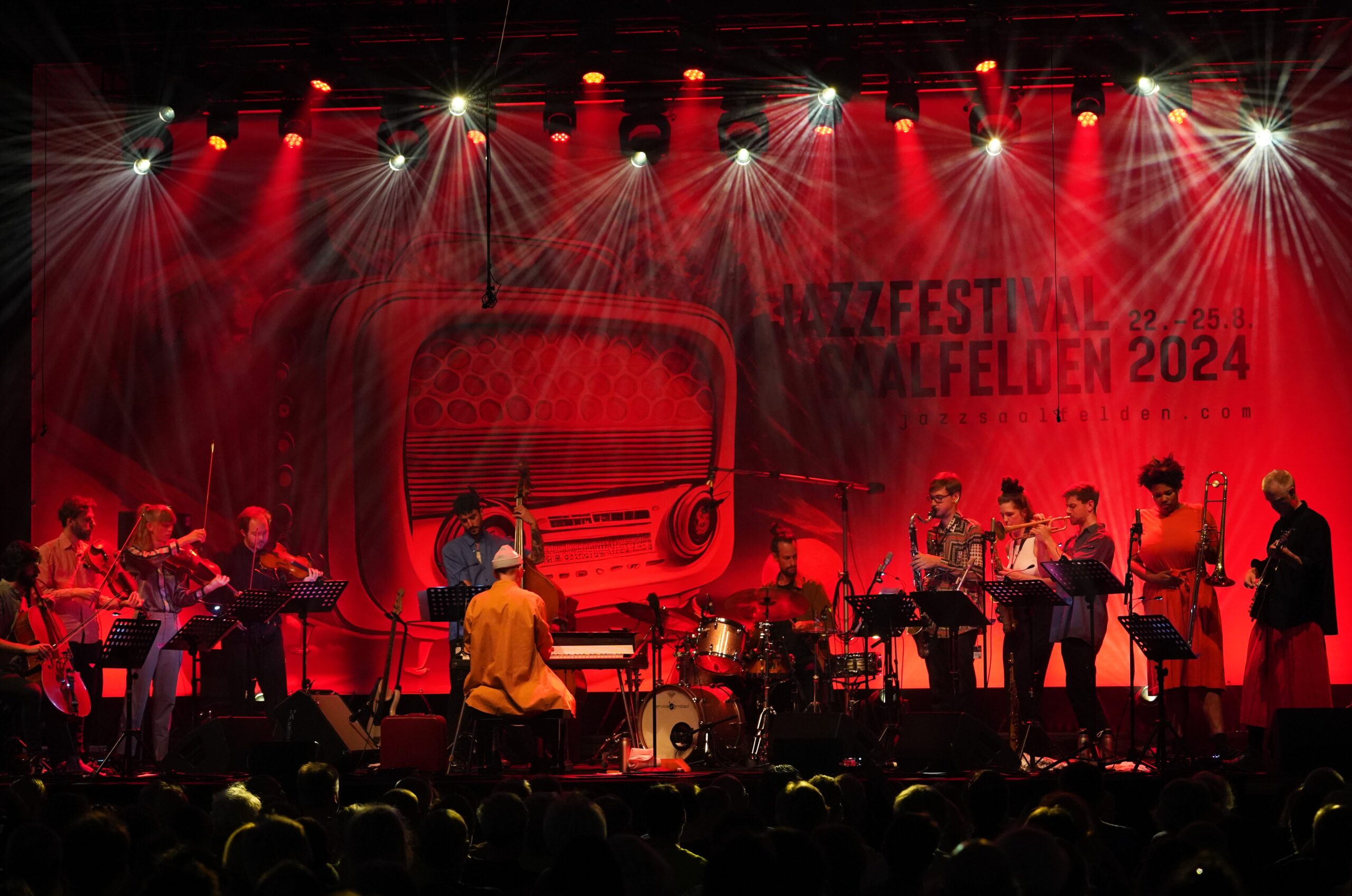 Auch wenn bei der Ausrichtung Saalfeldens nicht immer jedes musikalisches Experiment gelingen kann, mitunter die freien Radikale einander ähneln, so hatte diese Ausgabe doch eine bemerkenswerte Quote an gelungenen, hochinteressanten und eben auch völlig unterschiedlichen Beiträgen. So wurde zum Beispiel der eher merkwürdige – und mit seiner einseitig pro-palästinesischen Einführung bedenkliche – Auftritt der amerikanischen Sängerin Amirtha Kidambi mit ihrem Elder Ones-Quintett schnell wieder aufgefangen durch die Messthetics-Landsleute mit ihrem für Saalfelden unüblich geradlinigen Rock-Jazz, bei dem als Gast Saxofon-Star James Brandon Lewis mächtig abdrückte. Oder durch das lyrisch-intime französische Streicher-Trio La Litanie des Cimes um den Didier-Lockwood-Schüler Clément Janinet. Erst recht durch das Brainteaser Orchestra, einem der absoluten Höhepunkte des Festivals. Tyn Wybengas 13-köpfige All-Star-Auswahl der niederländischen Szene – die meisten Mitglieder von Jamie Peet über Teis Semey, Kika Sprangers bis zu Alistair Payne oder Nabou Claerhout haben ihre erfolgreichen eigenen Projekte – stellte sein älteres Großprojekt AM.OK orchestra an Spielfreude und frischem kompositorischen Wind noch in den Schatten. Eine Sensation war alleine Nabou Claerhouts Posaunensolo.