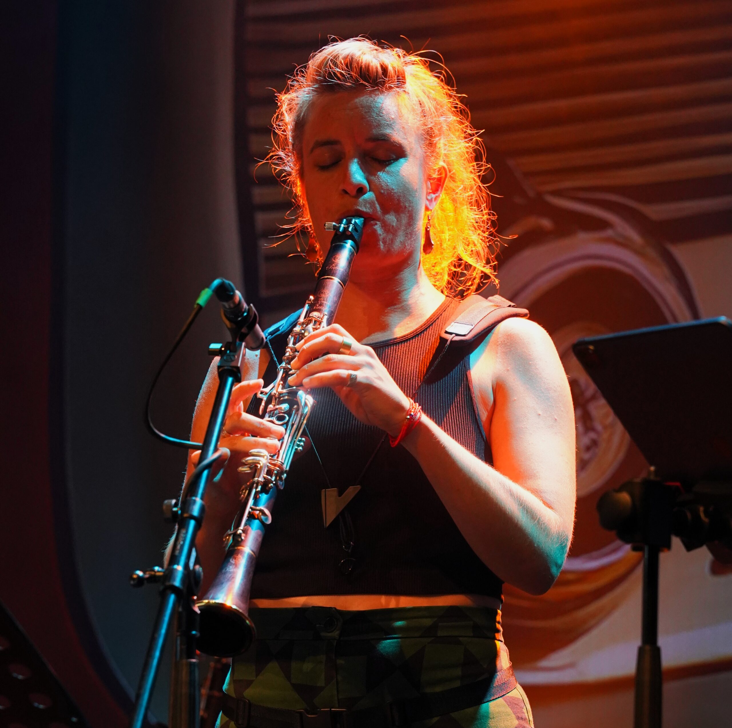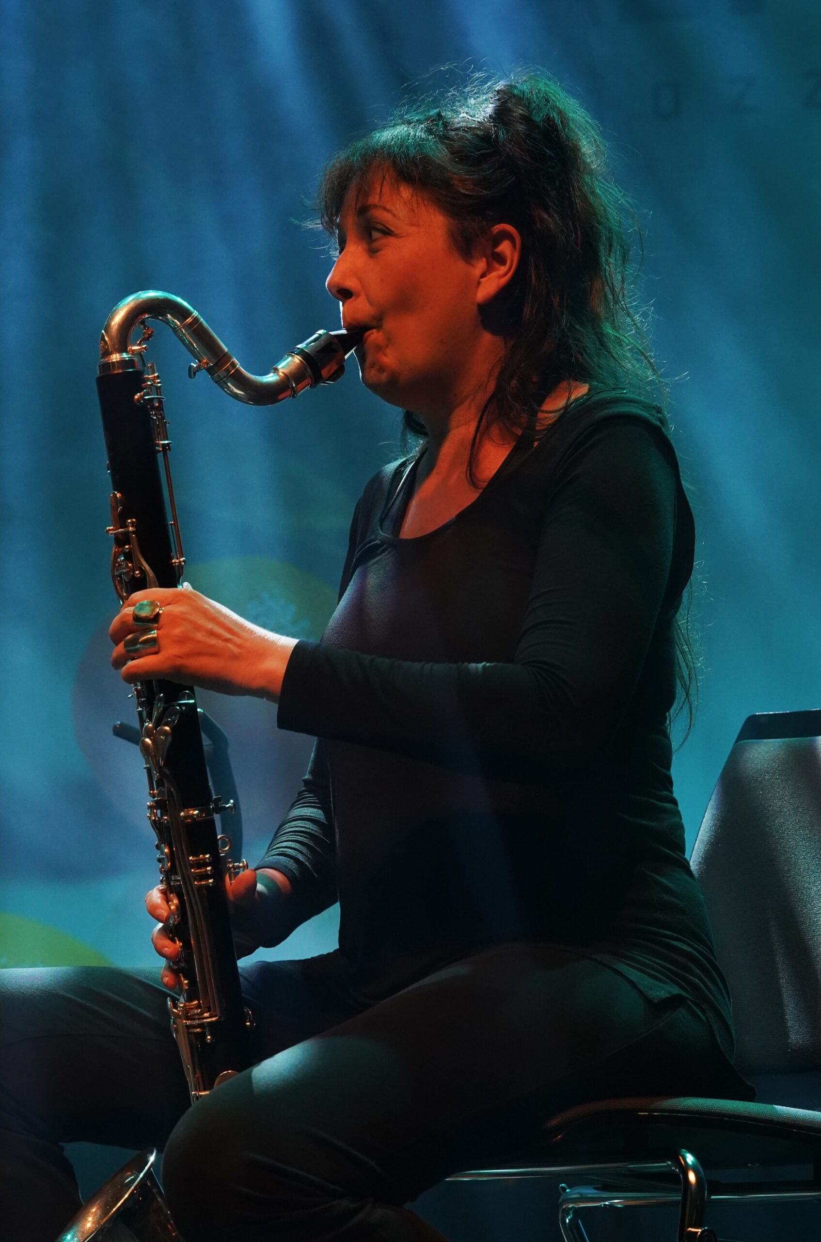Traditionell war das Auftakt-Konzert der Main Stage am Freitag eine Auftragskomposition an einen „heißen“ österreichischen Act. Shake Stew oder Christian Muthspiels Orjazztra Vienna etwa hatten dort umjubelte, Karriere-startende Premieren. Nicht ganz so glücklich konnte man diesmal mit der Commission für Mona Matbou Riahi sein. Die talentierte Klarinettistin, die gerade mit ihrer Band Kry (zum Beispiel beim Outreach Festival in Schwaz) Aufsehen erregt, konnte sich im Quartett mit Dorian Concept an electronics, Manu Mayr Bass sowie der für die (beeindruckenden) Visuals zuständigen Lou Zon nicht so recht zwischen Performance, Minimalismus, Noise, Electro oder Free Jazz entscheiden.