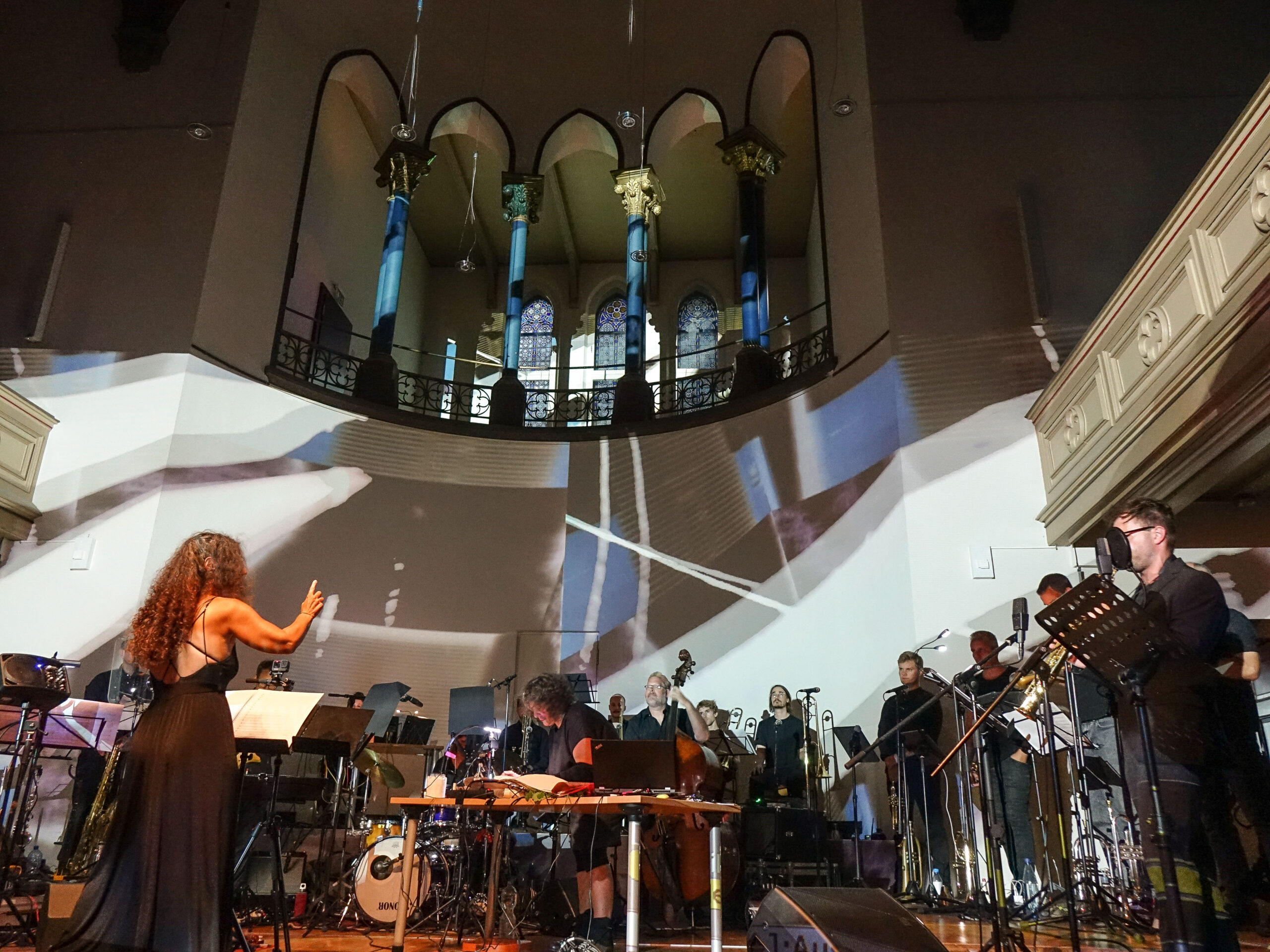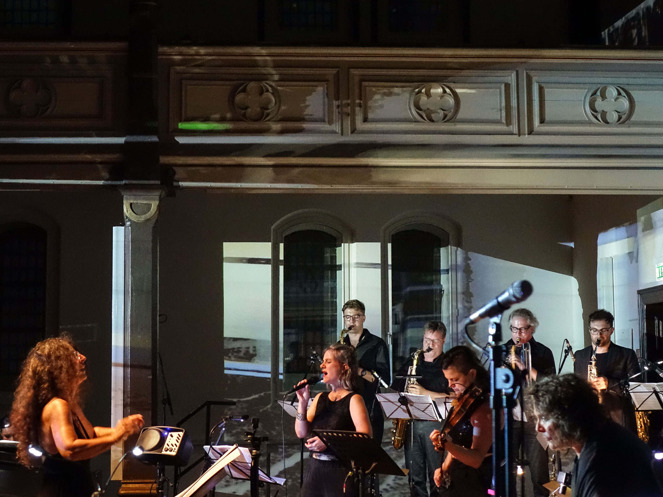 Bei diesem Large Ensemble, das von beiden Bandleaderinnen Christina Fuchs und Caroline Thon kuratiert wird, geht es um weit mehr als nur die Zurschaustellung höchsten musikalischen Könnens. Das Fuchsthone Orchestra begreift Musik als soziales, interaktives Handeln, um damit auch globale Botschaften zu transportieren. Die beiden Kölner Bandleaderinnen Christina Fuchs und Caroline Thon schärfen mit diesem Konzept über das Medium der Musik den Blick auf das große Ganze – auch und gerade in ihrer aktuellen Reihe „reloaded“, zu der das Konzert in der Immanuelskirche gehörte.