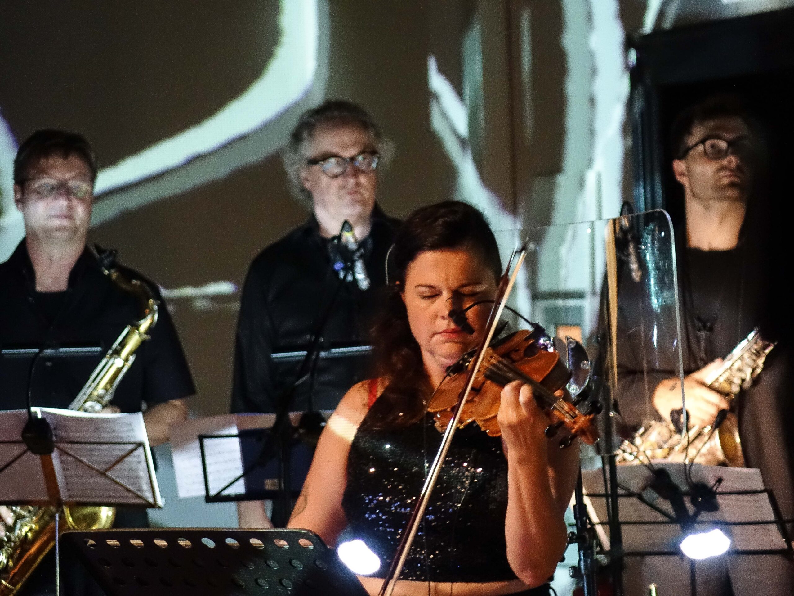 Barbara Barth übernahm den Vokalpart, was allein schon extrem vielschichtig daher kam, reichte die Palette doch von expressionistischer Stimmakrobatik über poetischen Jazzgesang bis hin zur Song-Poetry, die die Botschaft des Abends konkretisierte gipfelnd im zutreffenden Slogan, dass wir doch alle im selben Boot sitzen. Laja Genc am Klavier faszinierte mit träumerischer Sensibilität, Zuzana Leharova elektrisierte mit ihrem Violinton, und Jens Düppe am Schlagzeug gestaltete die Dynamik mit hypnotischen Snare-Drum-Akzenten – das nur als ein paar Beispiele. Die Akustik der Immanuelskirche, die sich anfangs als Herausforderung erwies, entfaltete schließlich eine beeindruckende Wirkung.