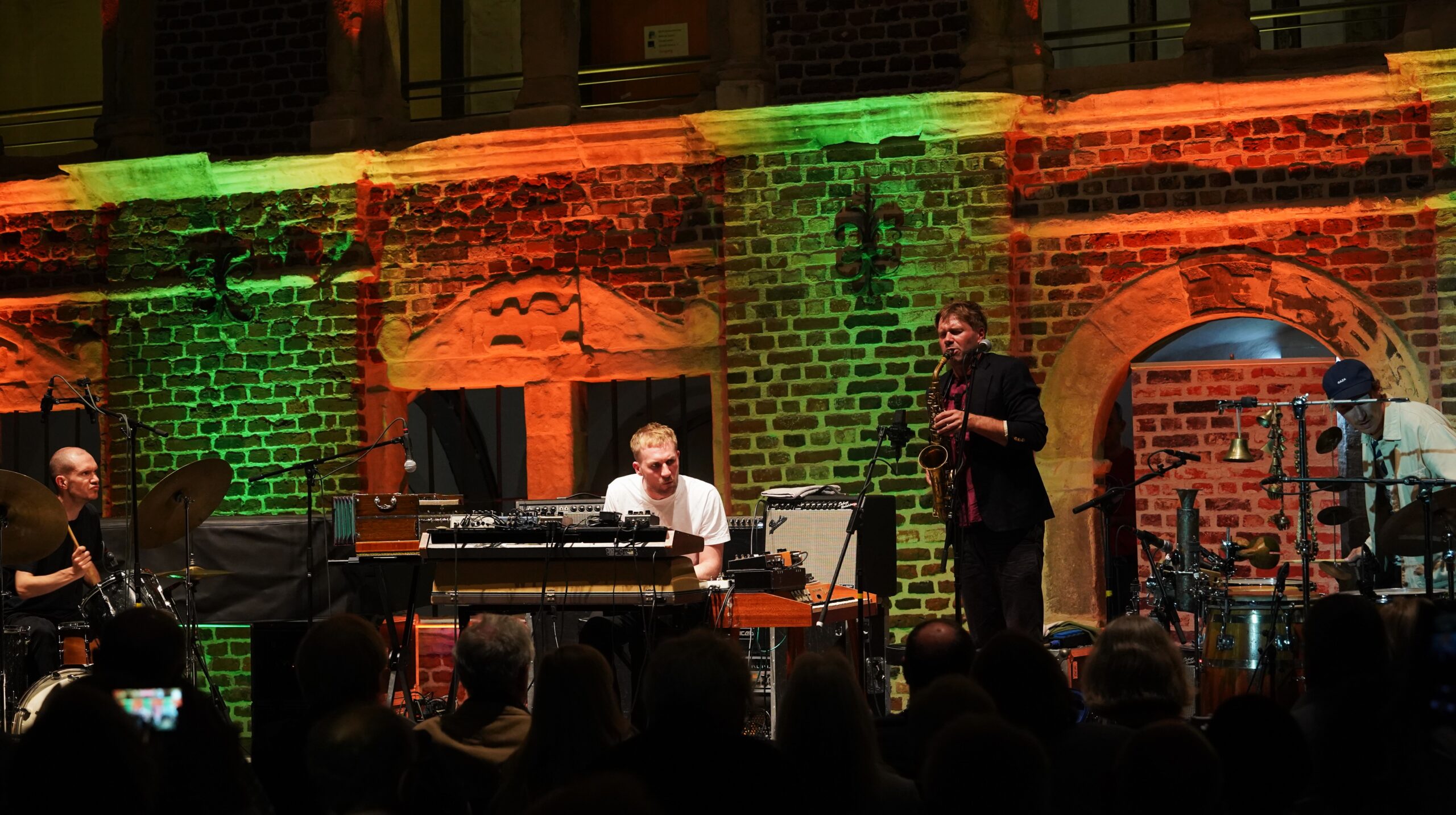 Vier Tage lang konnte man nun wieder schöne Ecken von Gelsenkirchen kennenlernen, besondere, zum Teil herausragende Spielorte für Konzerte nämlich. Das Schloss Horst etwa als Festivalzentrale, dessen Bühne vor einer in Farben getauchten alten Wandfassade sich vom Ambiente wie von der Akustik her so manche Stadt wünschen würde. Mit dem Industriedenkmal Nordsternturm in luftiger Höhe. Mit dem Schauburg Filmpalast, einem der letzten klassischen Kinopaläste der Republik, denkmalgeschützt und die Zwanzigerjahre-Architektur mit moderner Technik verbindend. Mit dem Musiktheater im Revier, einem revolutionären immer noch bewundernswerten Architektur-Highlight der Fünfzigerjahre. Mit der zur Spielstätte umgewandelten Heilig Kreuz Kirche, einem Prunkstück des Backsteinexpressionismus. In der Kaue, einem zum Club umfunktionierten ehemaligen Teil der Zeche Wilhelmine Victoria. Und erstmals im von Privatleuten aus einem Supermarkt in den „Kunstraum Norten“ verwandelten Saal.