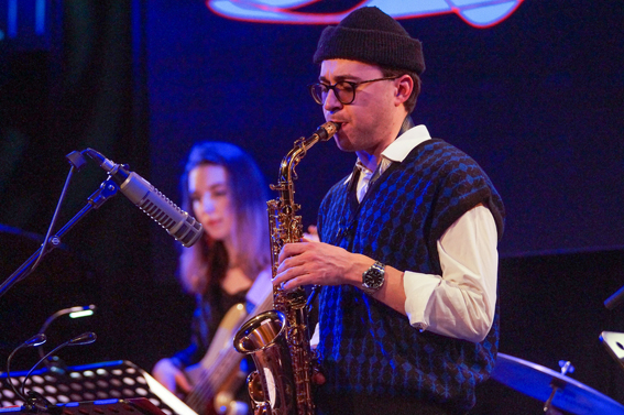 Sieben Konzerte verteilten sich an diesem Abend auf die zwei Bühnen im Stadtgarten. Unter ihnen war auch Jonas Engel, dessen Solo-Performance die Grenzen seines Saxophons neu definierte. Beeindruckend, wie er eine Trommel als Resonanzraum für die Schwingungen seines Horns nutzte und darin platzierte Metallobjekte zum Mitschwingen brachte. Als noch Live-Elektronik hinzukam, entfaltete dieser Dialog zwischen akustischer und elektronischer Klangwelt dann auch eine starke Überzeugungskraft.