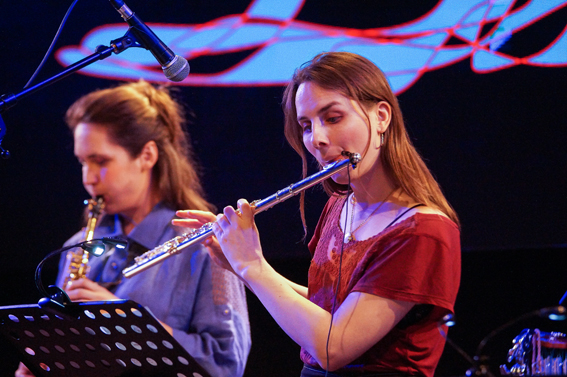 Sich einem Thema verschreiben und alles darauf abstimmen – in dieser Hinsicht erwies sich Jorik Bergmans Julius Eastman-Projekt als Höhepunkt des Abends. Die Flötistin und Komponistin bewies beeindruckendes Geschick, eine große Besetzung auf eine einzige musikalische Schwingung einzuschwören. Ihre Interpretation von Eastmans minimalistischen Texturen eröffnete völlig neue Perspektiven auf das Werk des US-Amerikaners. „Stay On It“ entwickelte sich, basierend auf einem einzelnen Ausruf, zu einer Art sozialer Skulptur, in der sich Bläserfanfaren zu einem regelrechten Freudenfest verdichteten. Die raffinierte Überblendung in den zweiten Teil, der sich zu einer Sun Ra-mäßigen Expressivität steigerte, gelang dabei besonders eindrucksvoll. Die rhythmische Energie mündete schließlich in frei wuchernde Klangbiotope, aber auch die folgten einer Richtung, einer Vision.