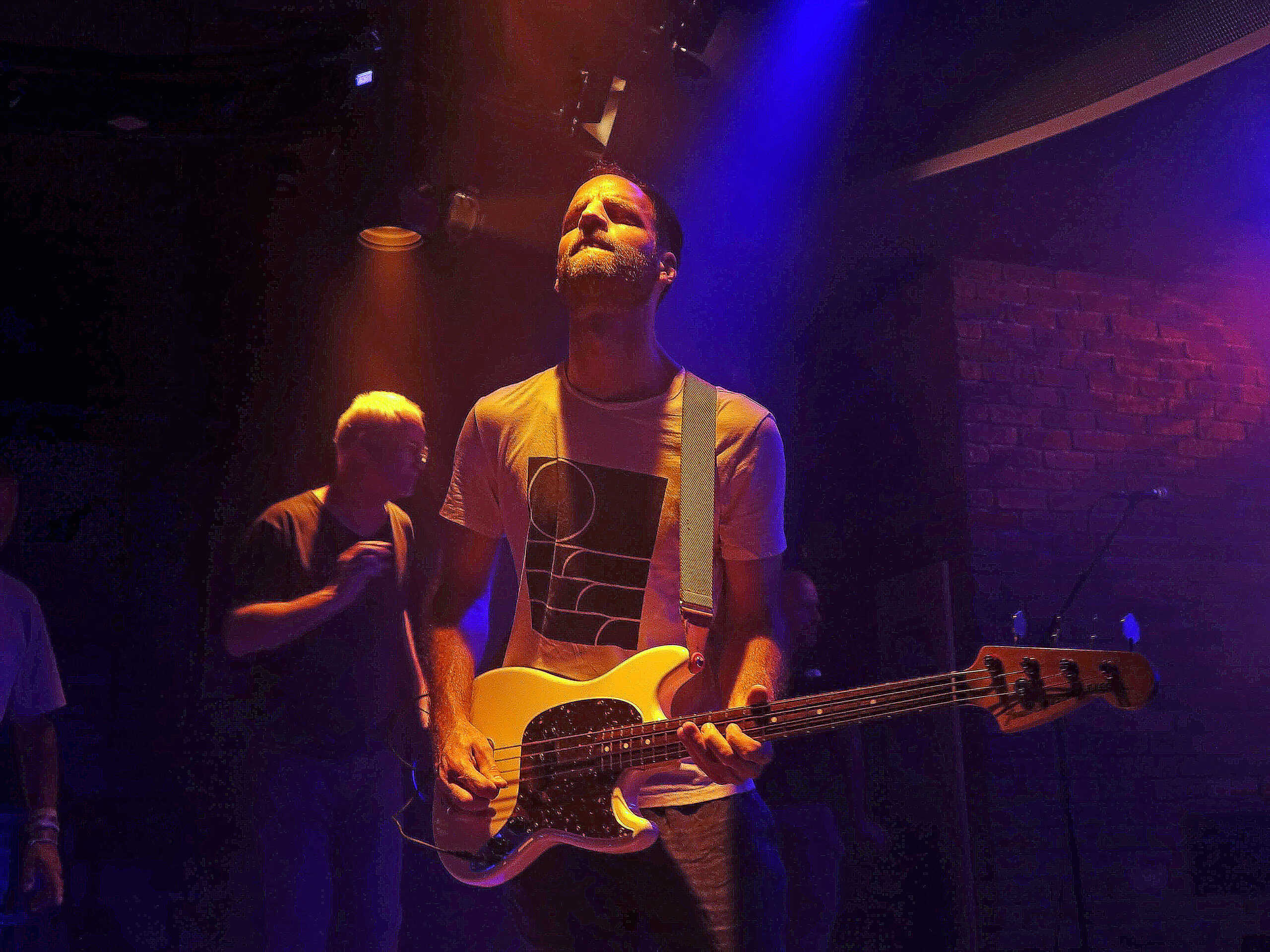 Irgendwann fand doch mal ein Konzert draußen statt, als der Himmel seine Schleusen öffnete – und zwar bei De Beren Gieren im Gefängnishof Tschumpus in Brixen, der heute Kulturzentrum ist. Diesmal mit Reinier Baas an der Gitarre, der kurzfristig für Fulco Ottervanger einspringen durfte.. Hyperaktiver rhythmischer Fluss entwickelte sich, ein pochendes Schlagzeug klang wie beschleunigter Herzschlag – oft war das mehr Postrock als Jazz. Reinier Baas fühlte sich auch hier auf Anhieb in seinem Element, ließ die Klänge fantasievoll aus den Saiten sprechen, während Lieven Van Pée seinen Bass manchmal fast orientalisch singen ließ. Man fühlte sich umarmt durch so viel Musik, während der Regen auf die Ponchos, die schnell verteilt worden waren, prasselte.