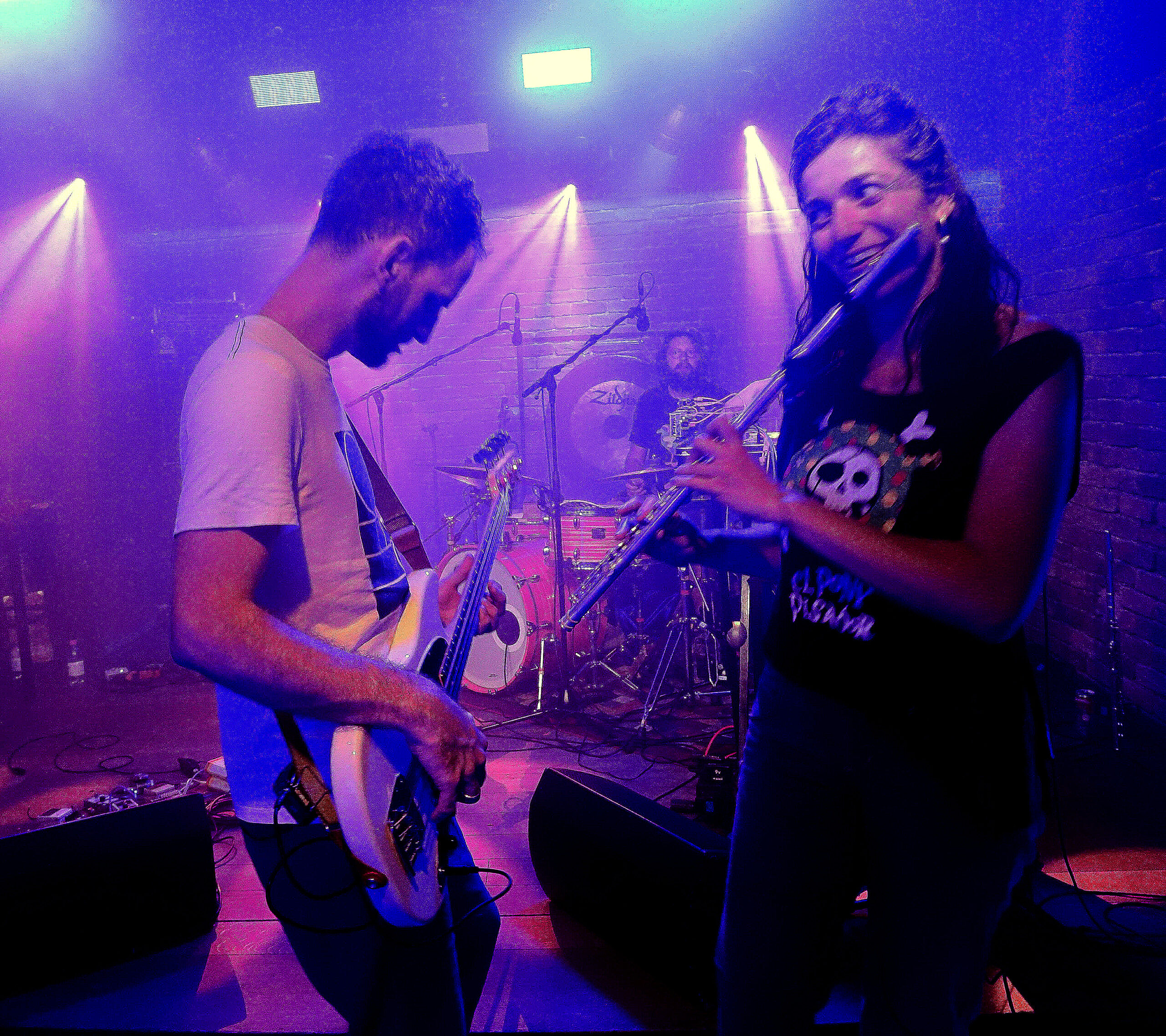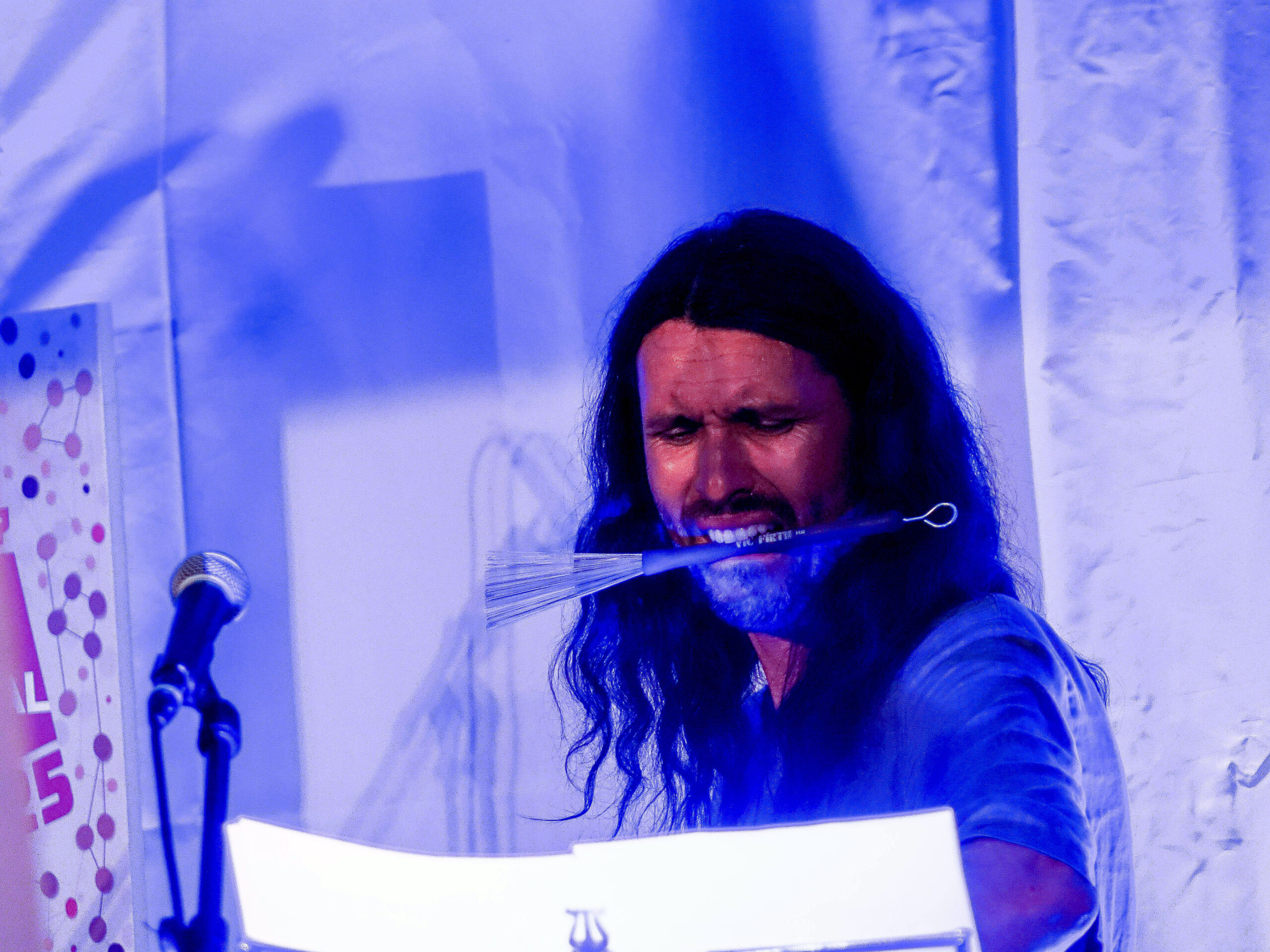 Lukas Kranzelbinder, Delphine Joussein, Johannes Schleiermacher, Julian Sartorius und drei Tänzer arbeiteten sich fünf lange Stunden daran ab, treibend und hypnotisch jeden Zeitbegriff der Musik aufzulösen. Psychedelische Flötensounds schweben wie farbige Rauchschwaden durch den Raum. Hypnotische Bass- und Guembri-Figuren geben den kollektiven Herzschlag vor. Über allem die psychedelisch gellenden, wild fauchenden Sounds aus der elektronisch modifizierten Flöte von Delphine Joussein, die jedes Jahr bei Kabarila mitmacht.