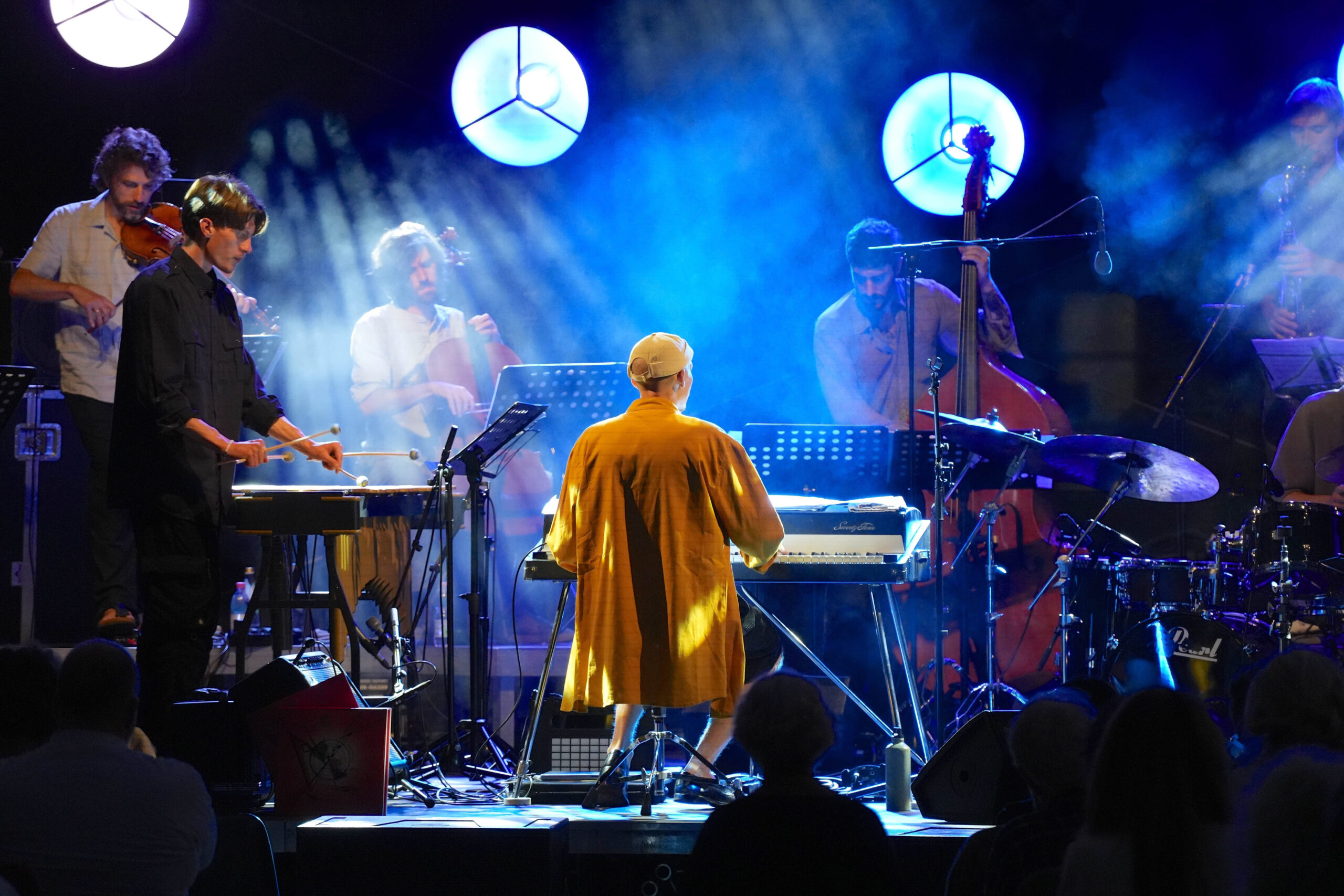 Denn Stephane Gallard and the Rhythm Hunters – eine französisch-belgische Formation – weiß, wie man einen solchen Ort bespielt, dass es funktioniert und sich für alle gut anfühlt: Dieser Jazz ist groovig, lässig, authentisch und braucht keine avantgardistischen Verrenkungen. Als leuchtender Stern ist da der junge Tenorsaxophonist Pierre-Antoine Savoyat, bei dem jeder Ton dafür spricht, dass er sich beim Studium in New York an den richtigen Quellen bedient hat. Saxophone – diese lauten, durchdringend präsenten Instrumente brauchen Raum und Luft, damit dieser potente Klang nicht alles durchschneidet, sondern zu atmen beginnt. Das Freiluft-Setting auf der Piazza bietet genau das, um seinen Höhepunkt in einem hymnischen Solo und später in Coltranes „Afro Blue“ als Zugabe zu finden. Hoch oben auf den Bergen brennt ein riesiges Feuer – kein Waldbrand, sondern Brauch zur Sommersonnenwende. Die Flammen tanzen, während unten auf der Piazza die Instrumente singen. Es ist Sommer – mit allen Ausrufezeichen!