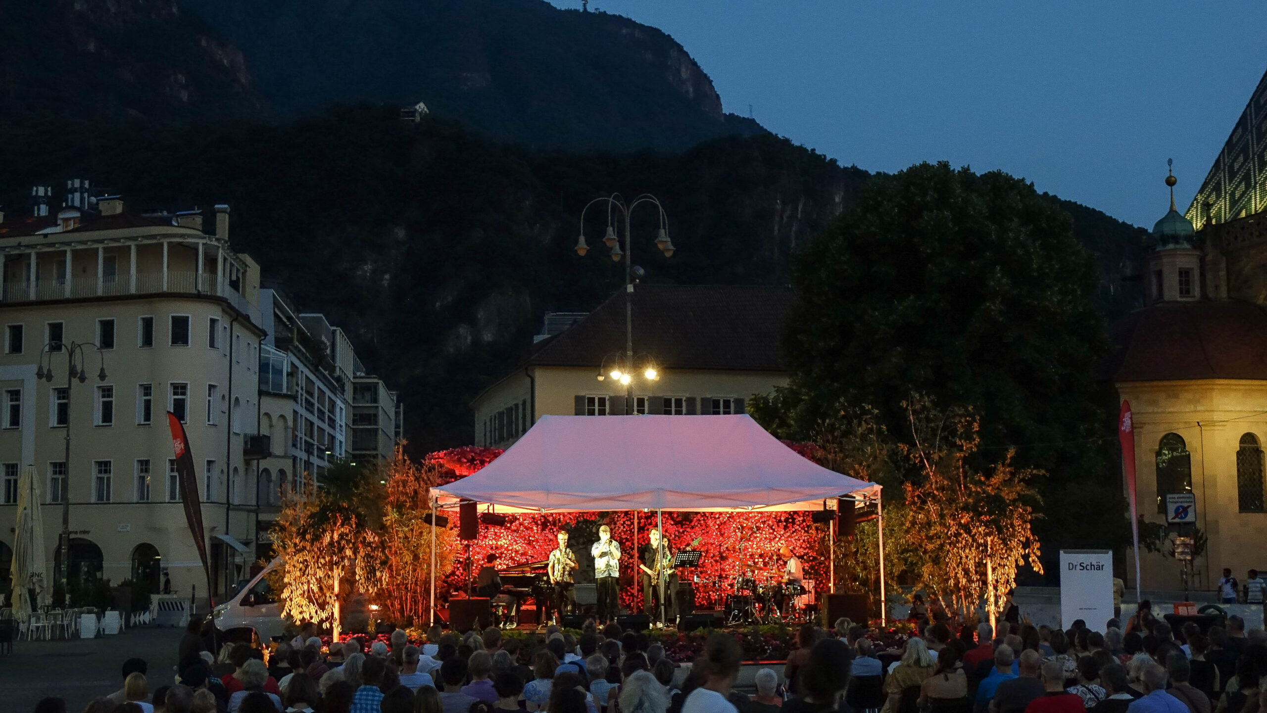 Auch nach dem Wegfall des Kapuzinerparks, der vier Jahre lang dem Festival eine neue – und vor allem publikumswirksame – Zentriertheit gab, möchte Jazz aus Bozen auch Jazz „in“ Bozen bleiben. Ein Bilderbuch-Sommerabend auf der Piazza Walter ist fast schon wie im Märchen: Freiluftsitzreihen füllen sich mit dem abendlichen Flanierpublikum, viele junge Menschen bevölkern den Brunnen – und lassen sich langsam in die große Sache des Jazz hineinziehen, die sich weniger nur Untermalung ist.