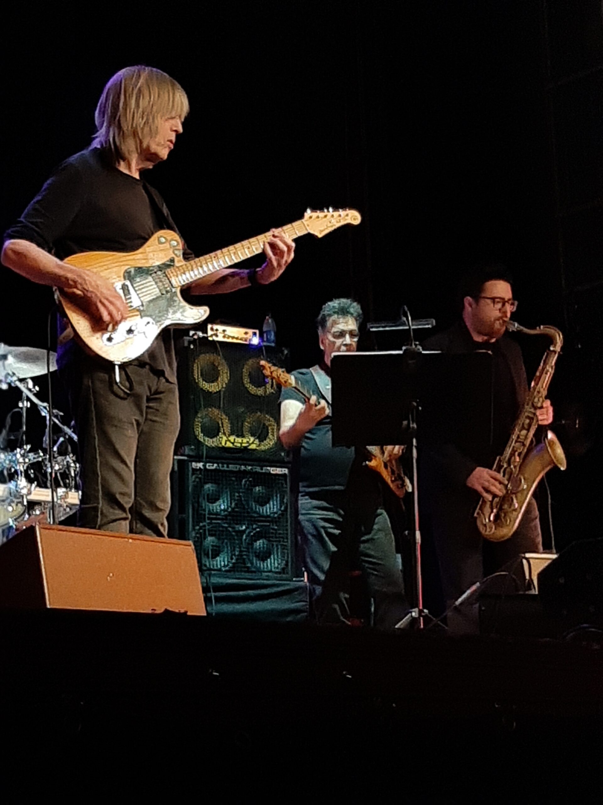 Auch der Auftritt des Gitarristen Mike Stern mit seiner Band, wenige Stunden später am selben Ort, war ein Glücksfall in der Verbindung von Augenblick und Ort. Im Quintett mit seiner Frau Leni Stern an der Gitarre, Gabor Bolla am Tenorsaxophon (in seinem ersten Auftritt in dieser Band), Jimmy Haslip am E-Bass und Dennis Chambers am Schlagzeug ließ Stern seine luftig-rockjazzigen Kompositionen in ausgreifenden Versionen aufblühen. Stern selbst spielte schon mal ein Solo von gut fünf Minuten, das sich von Chorus zu Chorus immer mehr steigerte und nirgends langweilig wurde: Faszinierend, wie dieser Gitarrist sein genussvoll aufjauchzendes Spiel immer wieder mit kleinen akkordischen Einwürfen anreichert und die manchmal vertrackten Themen in Unisono-Passagen mit dem Saxophonisten zu kleinen, beiläufigen Aha-Effekten macht. Das alles ist umso erstaunlicher, da er nach einem Unfall 2016 noch Einschränkungen an der rechten Hand hat und das Plektrum mit Perückenkleber an den Fingern befestigt. Auch Stern, dieser inzwischen 72-jährige Lustmusiker, erntete in Ystad stürmischen Jubel.
