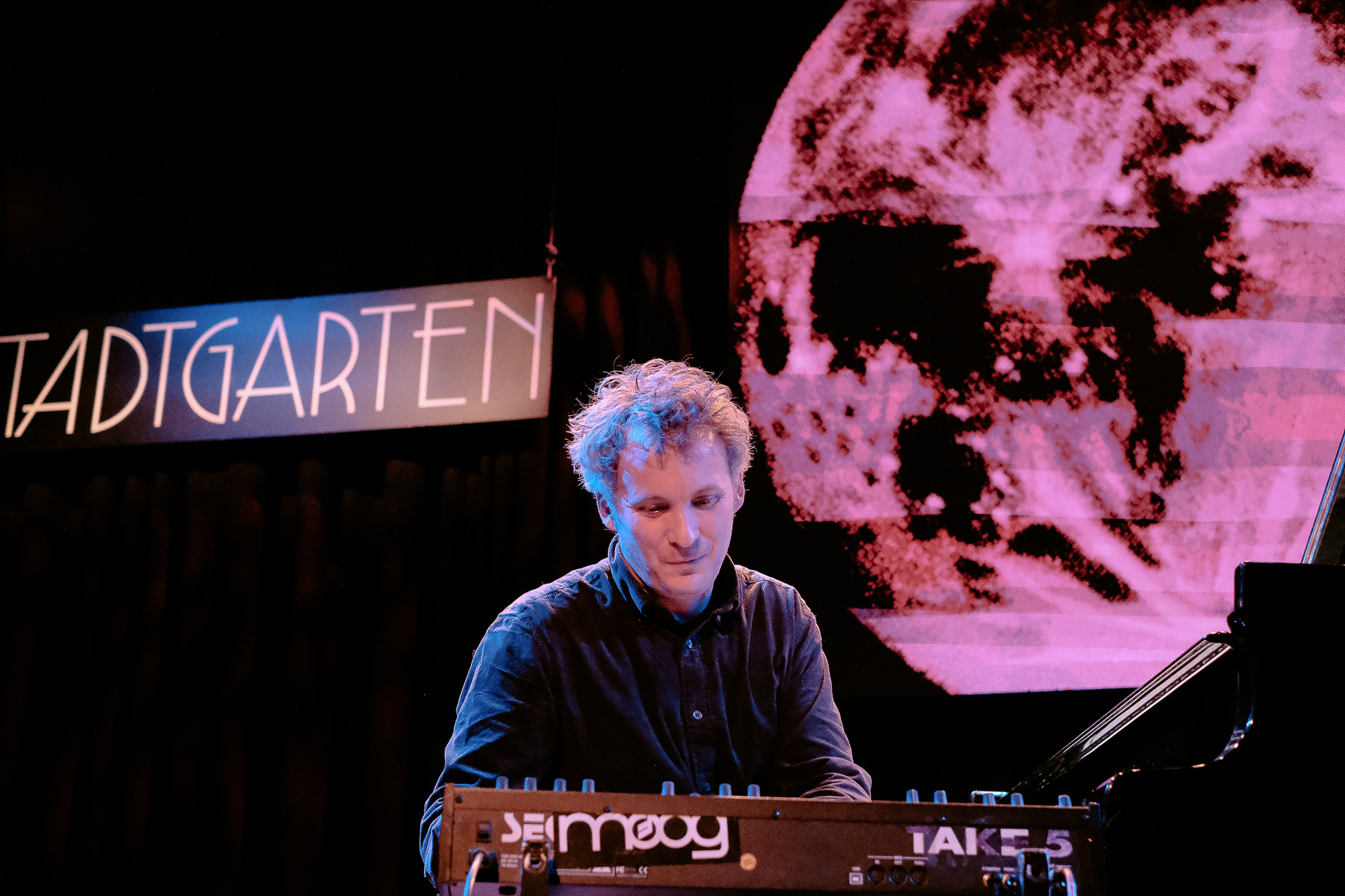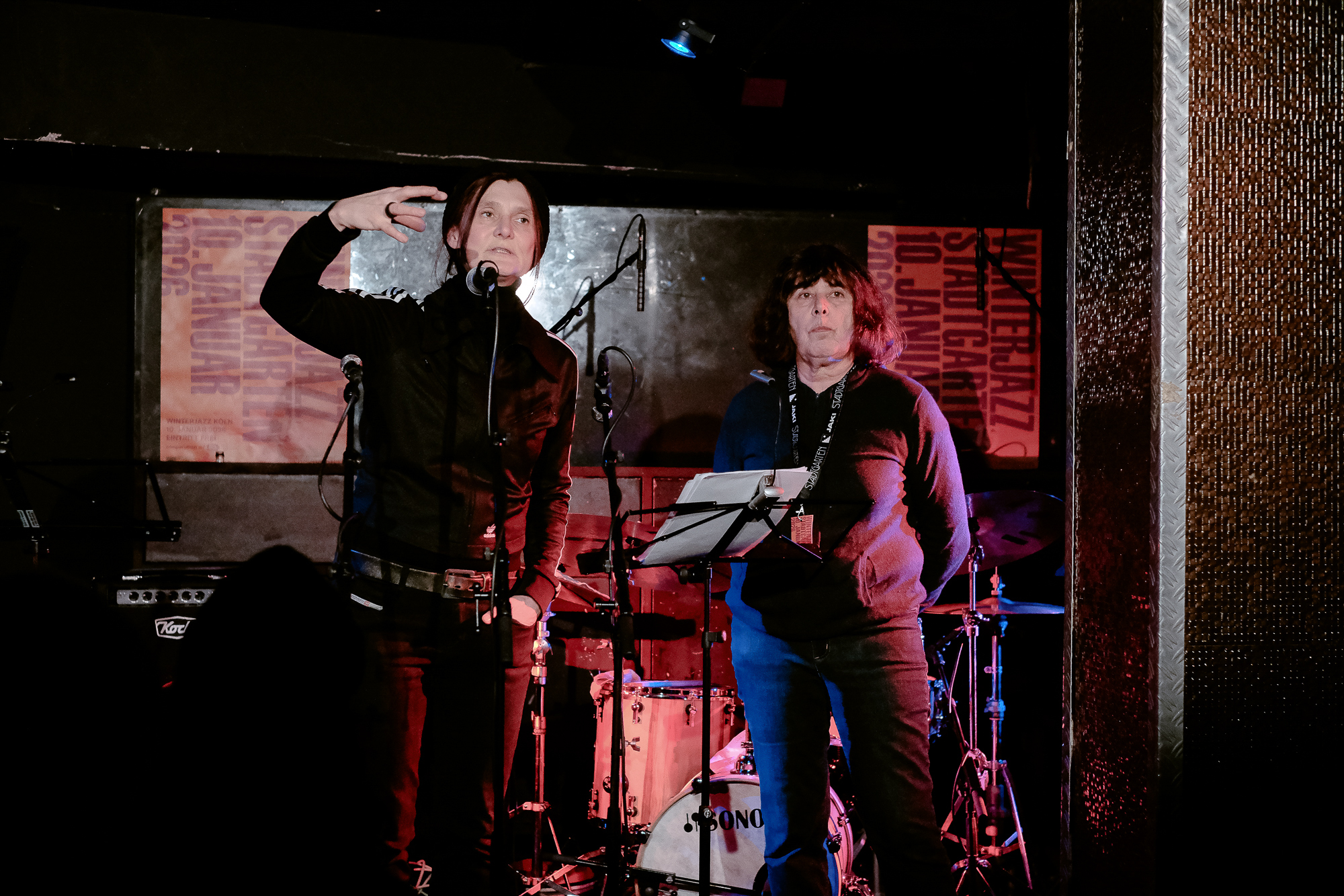 Der Stadtgarten, seit 1986 als Spielstätte für Jazz und improvisierte Musik etabliert und heute als Europäisches Zentrum für Jazz und aktuelle Musik vom Land Nordrhein-Westfalen gefördert, ist einer der wichtigsten Orte für diese Musik in Deutschland. Das Winterjazz nutzt das gesamte Haus: den großen Konzertsaal, das intimere Studio, das Foyer mit seiner loungigen Bar-Atmosphäre und den Club Zimmermanns im Untergeschoss. Die Besucher können sich frei zwischen den Räumen bewegen, ohne auf einen Platz festgenagelt zu sein. Der freie Eintritt senkt die Schwelle, vor allem für jüngeres Publikum.