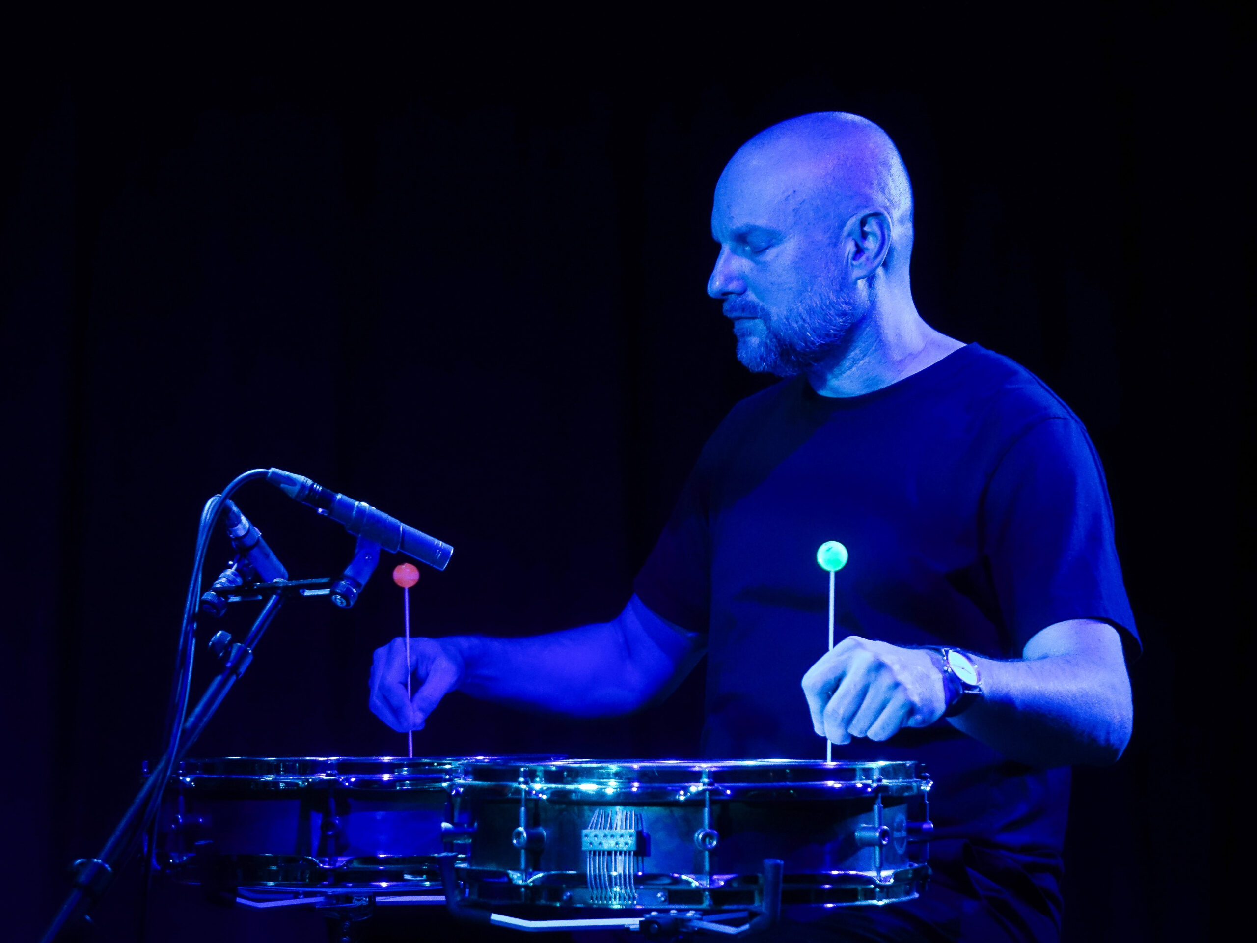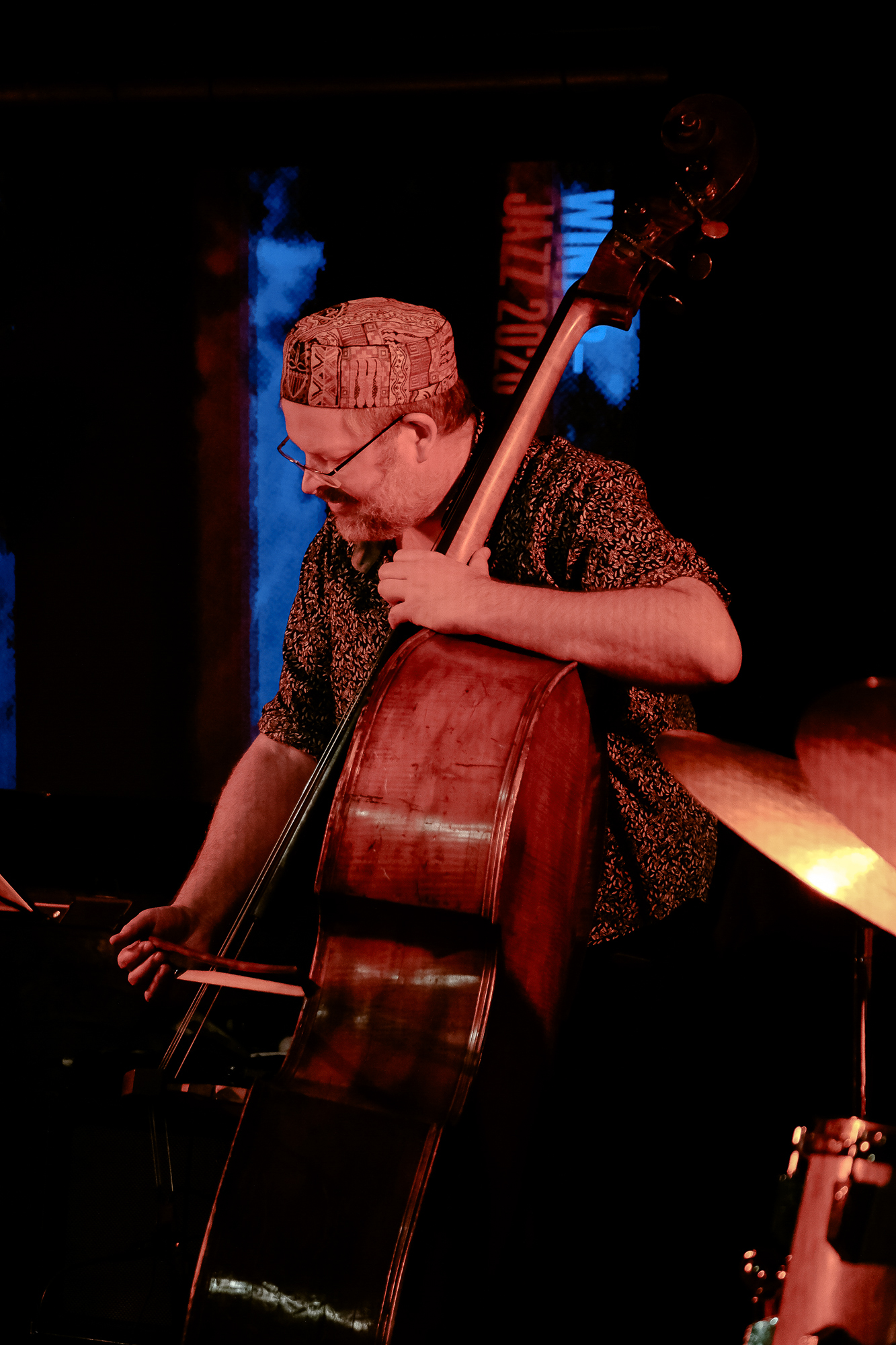 Jazz von heute ist divers und bunt: Im Foyer beeindruckte die Band der Gitarristin Monika Roscher mit einer breitwandigen Klangwelt aus Noise und Kollektivimprovisation. Zwei Gitarren, zwei Schlagzeuge, wabernde Bass-Sounds und beseelte E-Gitarrenläufe mit viel Empfindung in der DNA. Shiva & The Destroyer luden den Raum mit Krautrock-Jazz und bunten Fantasiekostümen auf. Ganz feine Klänge anderswo: Etienne Nillesen ließ an zwei präparierten Snare-Drums die Stäbchen rotieren und produzierte extrem sensible Flageolett-Töne, so präzise kontrolliert, dass daraus minimalistische Sequenzen von fragiler Schönheit entstanden. Vokalistin Cansu Tanrıkulu klinkte sich ein und ergänzte das Ganze um eine lyrische, hochfragile Dimension. Pianist Philip Zoubek machte solo das große Fass auf – spätromantische Rezitative, brausender Klangrausch, ein Pianist, der zeigt, was dieses Instrument alles kann.