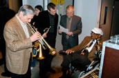 Die Trompetenlegende Clark Terry und seine Kollegen Dusko Goykovich und Stepko Gut waren hier, um den Mitgliedern der Hochschulbigband zu zeigen, wo der Hammer hängt. Im Abschlusskonzert in der Stadthalle fiel das Ergebnis dieser Arbeit so hervorragend aus, dass Stepko Gut sich zu der Formulierung hinreißen lies: „Eine so tolle Band habe ich hier nicht erwartet.“ Dieses Lob muss man sich auf der Zunge zergehen lassen, denn die Detmolder Hochschule verfügt nicht über eine eigene Jazzabteilung. Die sich hier unter der fachkundigen Leitung des Trompeters und Arrangeurs Professor Oliver Groenewald den Errungenschaften des Bebop, Modern Mainstream oder Fusion zuwenden, tragen sich eigentlich mit der Absicht, ihr Wissen später als Studienräte an die nächste Generation weiterzugeben. Und da geht bekanntermaßen inzwischen kein Weg mehr am Jazz vorbei. Es hat schon was, an einer Hochschule ohne ausgewiesene Jazzabteilung eine Big Band als feste Institution aufzubauen. Dieses Konzert ergab sich aus dem Zusammenspiel von Kulturamt, örtlichem Jazzverein und der Hochschule für Musik Detmold. Hier dokumentierte sich nach außen, was sich hinter dem Logo „Linie K“ inhaltlich verbirgt. In enger Kooperation der verschiedenen Institutionen erhalten die Studenten die Möglichkeit, „in die Wirklichkeit zu springen“. Sie erleben das Ergebnis ihrer Arbeit im echten Konzert, können „draußen“ erfahren, wie das, was sie sich „drinnen“ in der Hochschule erarbeitet haben, ankommt, sich umsetzen lässt. So weit, so gut. Ein Weiteres war genauso wichtig. Am Sonntag-morgen hieß es: „Jazz meets Klassik meets Jazz“. Wer sich unter diesem Wortspiel eine Begegnung von Bach und Beat, einen swingenden Mozart oder einen groovenden Beethoven vorstellte, wurde zum Glück eines Besseren belehrt. Hier wurde hörbar, was die Initiative „Linie K“ innerhalb der Musikhochschule zu bewegen versucht: den Blick über Tellerränder hinweg. Kompositionsstudenten aus der Klasse Professor Martin Christoph Redel sollten für eine Big Band schreiben und das ist gar nicht so einfach, wie man meinen möchte, wegen der unterschiedlichen Philosophien der beiden Musikwelten. In der hier einmal vereinfacht so genannten Klassik geht es um Kontemplation, um so das Sinnliche (Hörbare) der Musik in seiner geistigen Wahrhaftigkeit wahrzunehmen und darin im besten Fall die Figuration von Wahrheit zu erkennen. Im Jazz geht es um die Lebendigkeit des Augenblicks. Dessen Schönheit verwandelt er in das Fest, den Rausch des Lebens, und das meint neben allen harmonischen und melodischen Errungenschaften (Modalität, Blue Notes) vor allem die Befreiung des Beat aus der Alltäglichkeit eines geraden Pulses. Swing und Groove sind dafür die Schlüsselworte. Wie vorsichtig diese Begegnung versucht wurde, entschied über die Qualität der fünf Kompositionen, die am Sonntag ihre Uraufführung erlebten. Martin Christoph Redel versuchte in seinem „Blue Mood“ mit großer Umsicht und Respekt, die beiden Felder aufeinander zuzubewegen. Seine „Klassik“ klang vom Timing her sehr ruhig, so dass die groovenden Elemente seines „Jazz“ sehr organisch in die Komposition hineinwachsen konnten. Bei anderen Komponisten (Julian Lembke oder Junguk Kim) schwang die Musik zwischen „klassischen“ und „jazzigen“ Passagen hin und her, ohne dass eine echte Begegnung hörbar wurde. Bei Wook-Yon Jeon fiel besonders auf, wie er die Klangmöglichkeiten von Saxophon, Posaune und Trompete aus den etablierten Klangfarben einer Big Band herauszulösen versuchte. Ungeachtet der Tragfähigkeit der Ergebnisse öffnete allein das Ereignis für die Arbeit an der Hochschule neue Türen. Schon das war ein Erfolg von „Linie K“. Andreas Schwabe |